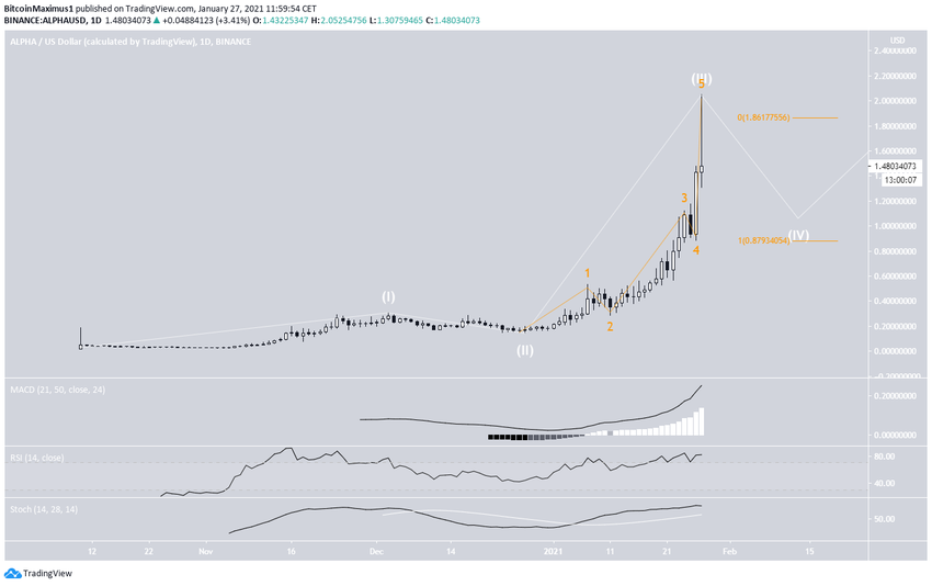 Al igual que la FTM, la ALPHA ha aumentado a un ritmo acelerado desde que rompió inicialmente desde su nivel máximo histórico el 7 de enero de 2021.