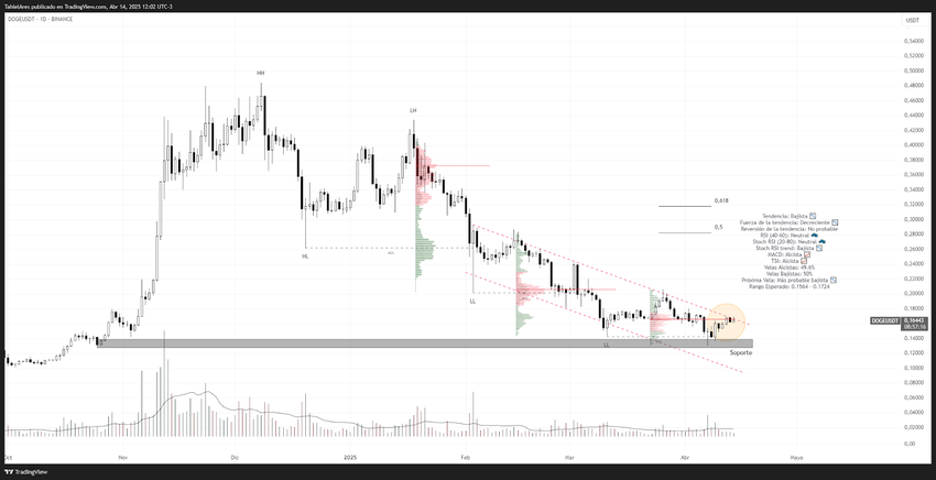 Dogecoin se encuentra en una estructura de corrección bajista desde su máximo anual alcanzado en marzo. Actualmente, DOGE cotiza en torno a los 0.17 dólares, justo por debajo de una importante zona de oferta ubicada entre los 0.175 dólares y 0.185 dólares.