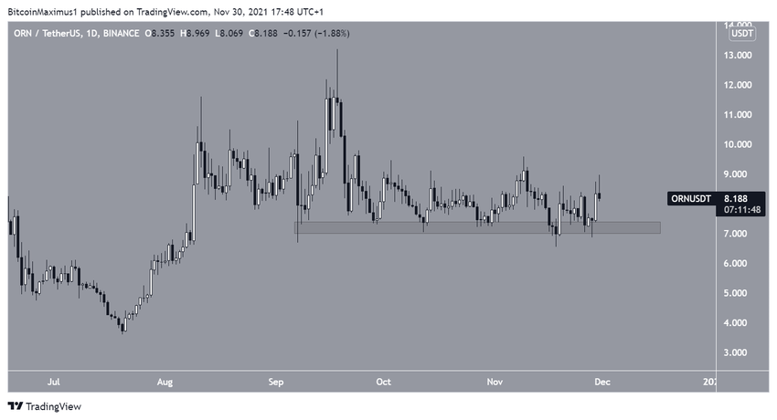 El precio ORN apenas se ha movido desde principios de septiembre y se sitúa por encima del área de soporte horizontal de 7 dólares.