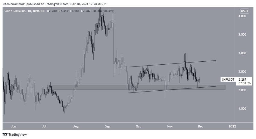 SponsoredA pesar de estas noticias positivas, el precio SXP se está rezagando considerablemente y apenas se mantiene por encima del área de soporte horizontal de 2.10 dólares.