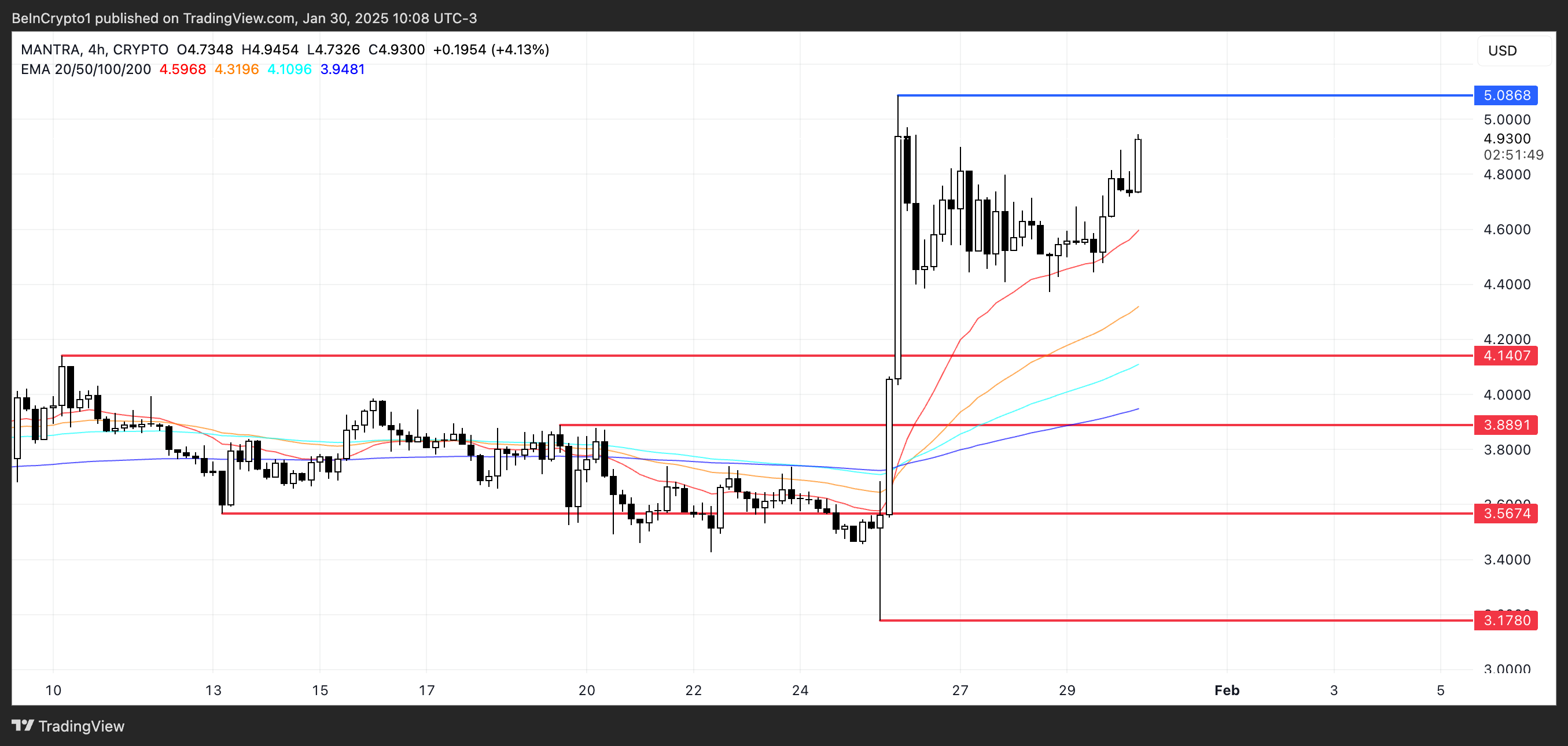 OM ha estado rompiendo consistentemente nuevos máximos históricos en los últimos días. Si la tendencia alcista actual continúa, podría negociarse por encima de 5 dólares por primera vez, consolidando aún más su posición como una plataforma RWA líder.