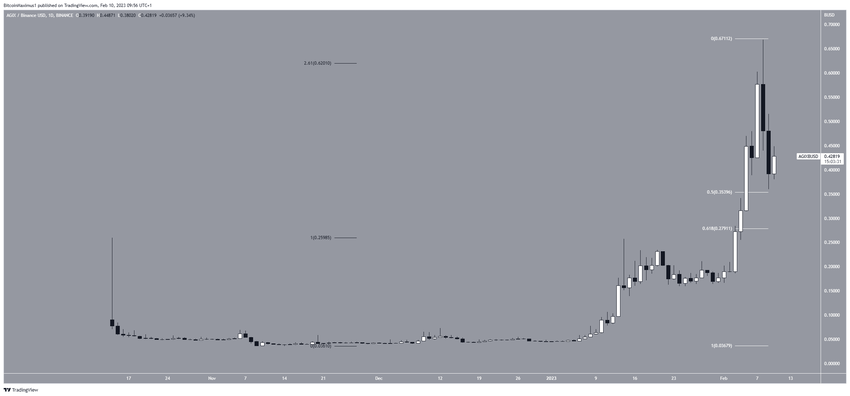 El precio de AGIX fue el mayor ganador en el espacio cripto durante la semana. Ha aumentado considerablemente desde principios de año. Alcanzó un nuevo máximo histórico de 0.671 dólares el 8 de febrero. Sin embargo, creó una vela bajista el mismo día y ha estado cayendo desde entonces. AGIX cayó al nivel de soporte de retroceso de 0.5 Fib al día siguiente a 0.354 dólares.