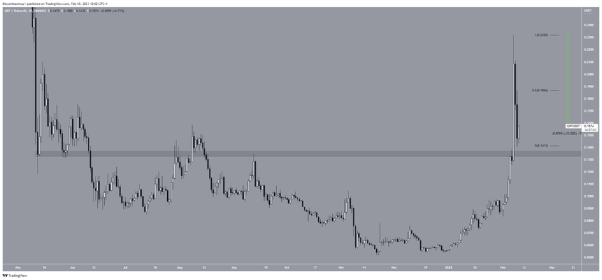 El precio GRT ha caído desde que alcanzó un máximo de 0.232 dólares el 7 de febrero. Creó dos velas bajistas seguidas, lo que llevó a un precio mínimo de 0.140 dólares el 9 de febrero. El precio rebotó después y ahora cotiza un 33% por debajo de su máximo del 7 de febrero.
