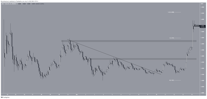 El precio de ARB salió del área de resistencia de 1.27 dólares el 13 de abril y alcanzó un máximo de 1.59 dólares al día siguiente. Esto está muy cerca de su precio más alto de todos los tiempos.