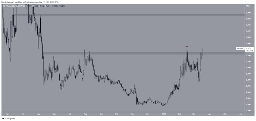 El precio de IMX ha aumentado rápidamente desde el 11 de marzo. El precio salió del área de resistencia de 1.25 dólares el 17 de marzo, pero aún no ha alcanzado un cierre por encima.