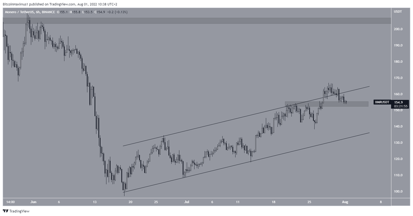 XMR ha estado aumentando dentro de un canal paralelo ascendente desde el 18 de junio. Aunque inicialmente salió del canal, ha vuelto a caer dentro de él desde entonces.