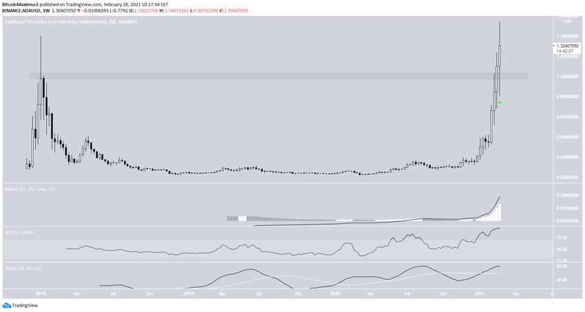 El 27 de febrero, ADA alcanzó un nuevo precio máximo histórico de 1,54 dólares, pero ha disminuido ligeramente desde entonces. Sin embargo, ADA todavía se cotiza por encima del área de alta resistencia de 1 dólar, y la tendencia puede considerarse alcista siempre que se mantenga.