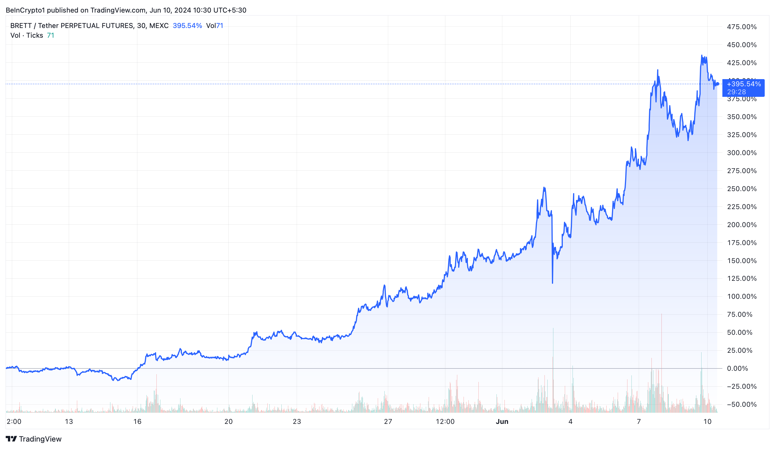 Tras la confirmación de la filtración, el precio de BRETT se disparó, marcando un aumento de casi el 400% en sólo 30 días. Este significativo repunte mejoró la presencia de BRETT en el mercado y elevó su valoración de 1,660 millones de dólares a unos impresionantes 1,920 millones de dólares. Además, durante el fin de semana, BRETT alcanzó nuevos máximos históricos.