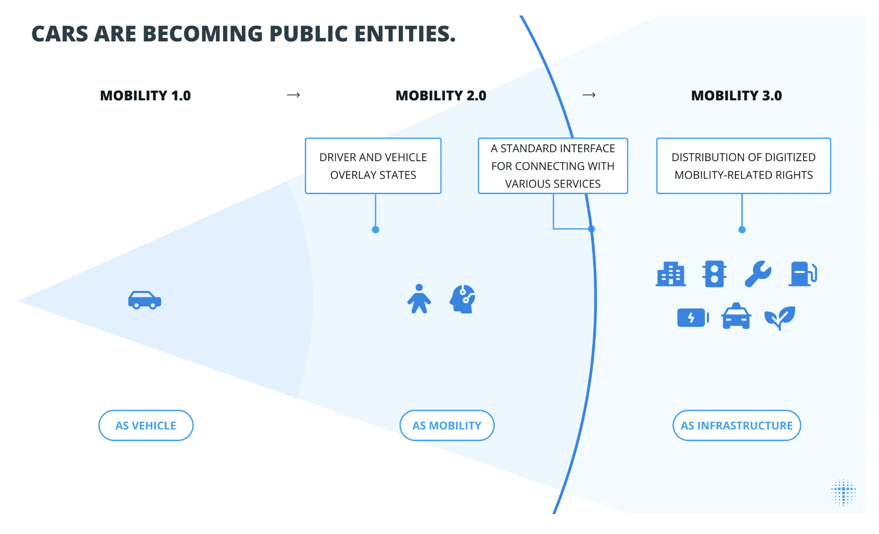 Para Toyota, la movilidad debe tener una infraestructura transparente y accesible que equilibre la privacidad en aras del beneficio público. Para ello, ve óptima la descentralización de la movilidad mediante cuentas inteligentes en la blockchain que permitan que la abstracción de cuentas (account abstraction) donde las aplicaciones no se limitan a monederos de los usuarios.