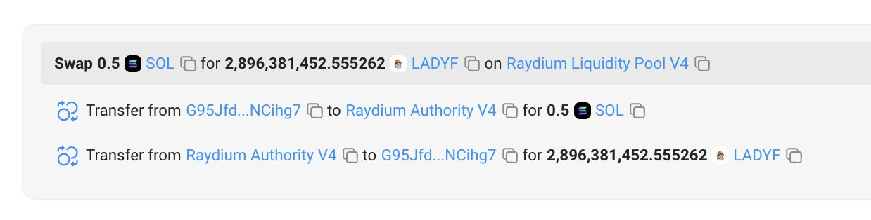 Este importante hito fue reseñado por Lookonchain a través de su cuenta oficial en X (antes Twitter). En su publicación reveló que el misterioso trader invirtió 90 dólares en Solana (0.5 SOL) para comprar tokens LADYF.