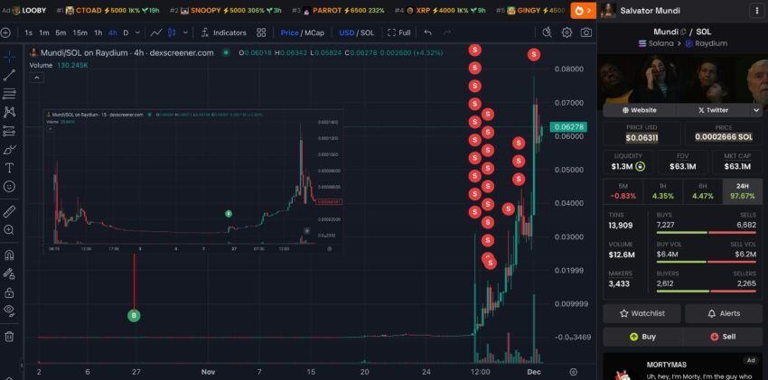 Todo comenzó con una simple apuesta de 1 SOL, equivalente a 169 dólares, el 25 de octubre. Mientras la comunidad de memecoins estaba animada tras el explosivo lanzamiento de $BAN, alcanzando una capitalización de 60 millones de dólares en sólo dos días, este trader eligió otro camino. En lugar de ceder ante FOMO y seguir la tendencia, descubrió un proyecto mucho más discreto: $Mundi, una memecoin artística apenas conocida.
