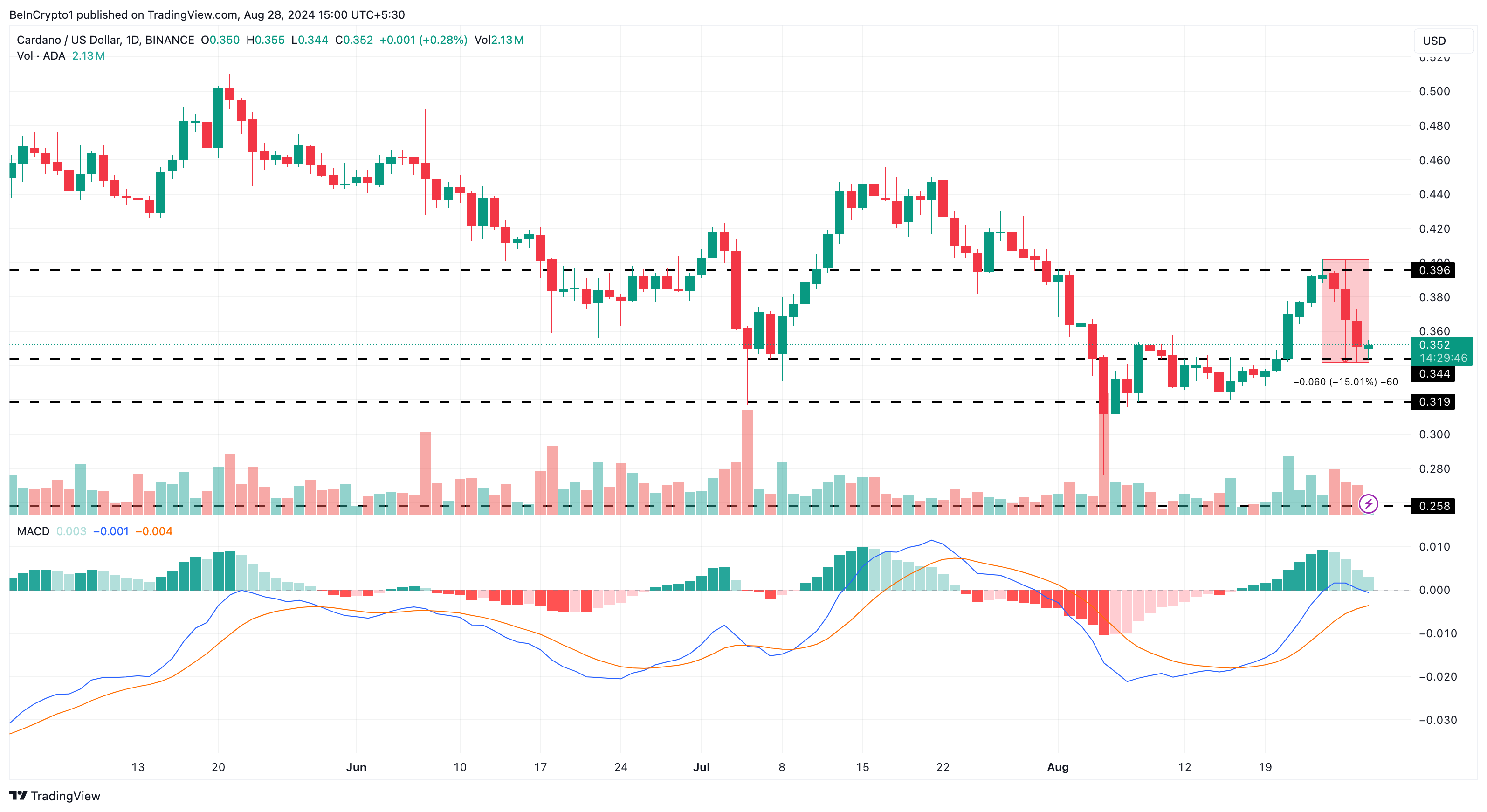 SponsoredPor otro lado, si los alcistas defienden la región de 0.34 dólares, ADA podría iniciar un movimiento ascendente hacia 0.39 dólares a corto plazo.