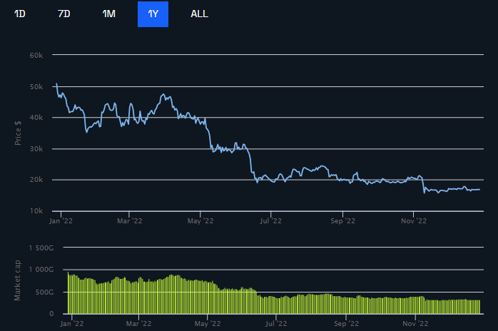 Una de sus llamadas más lamentables fue que 2022 vería “nuevos máximos históricos”. Desafortunadamente para los titulares, ninguna de las principales criptomonedas alcanzó un nuevo ATH este año. De hecho, desde que el mercado alcanzó su nivel más alto a fines de noviembre, la industria ha perdido más de 2 billones de dólares en valor.