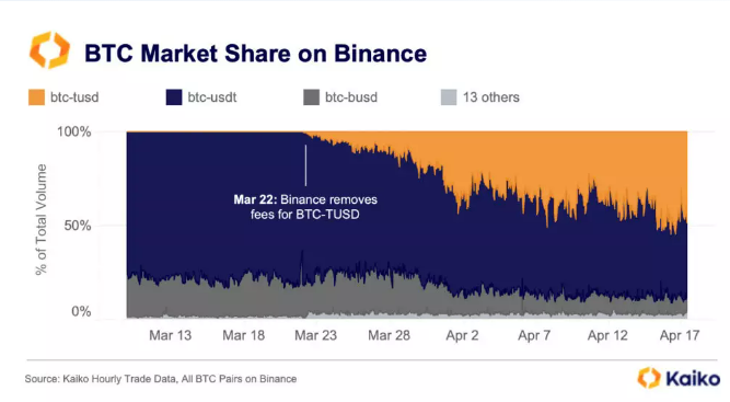 SponsoredSin embargo, el volumen del exchange se vio impulsado por el trading de tarifa cero en el par BTC/TUSD. El cual representa el 50% del volumen de negociación de Binance.