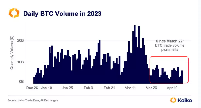 La caída ahora puede pintar una imagen más realista de dónde están los consumidores. La retracción de Binance hizo que los volúmenes de trading de BTC en todo el mercado cayeran en picado. Hasta niveles que representan con precisión un bear market.