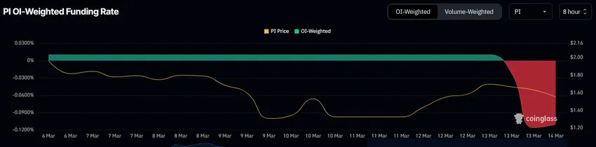 Los traders de Pi Network se están alistando para una tendencia bajista, como lo refleja la tasa de financiación profundamente negativa en el mercado de futuros. Esta tasa muestra que más participantes del mercado mantienen contratos cortos que largos, lo que indica que los traders anticipan una caída de precios.