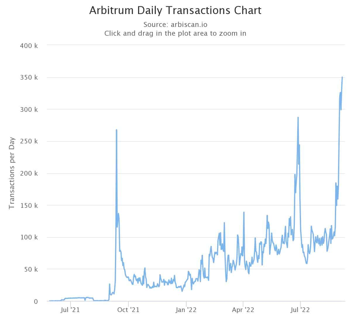 Gracias al Arbitrum Autumn y sus distintos acontecimientos, la red acaba de alcanzar un nuevo All-Time-High (ATH) en cuanto a volumen de transacciones diarias.