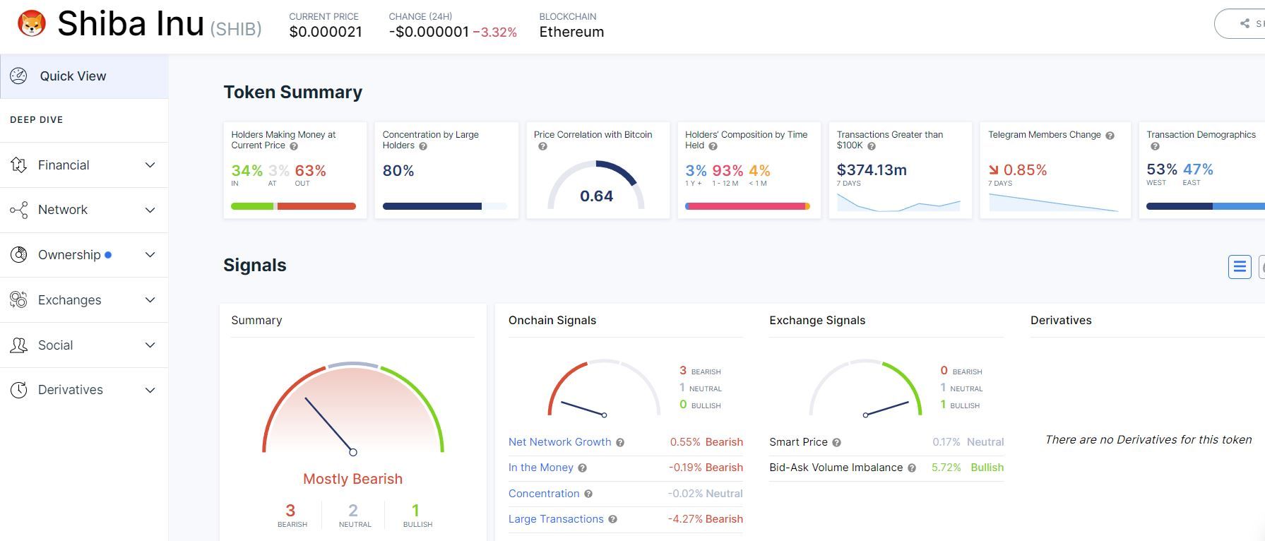 El sentimiento a corto plazo a mediados de marzo era bajista, mientras que los datos de IntoTheBlock sugieren que la perspectiva a largo plazo es alcista ya que 93% de los “hodlers” han tenido SHIB entre uno y doce meses. Más de las tres cuartas partes de los SHIB en circulación están en manos de personas con 100,000 dólares o más.