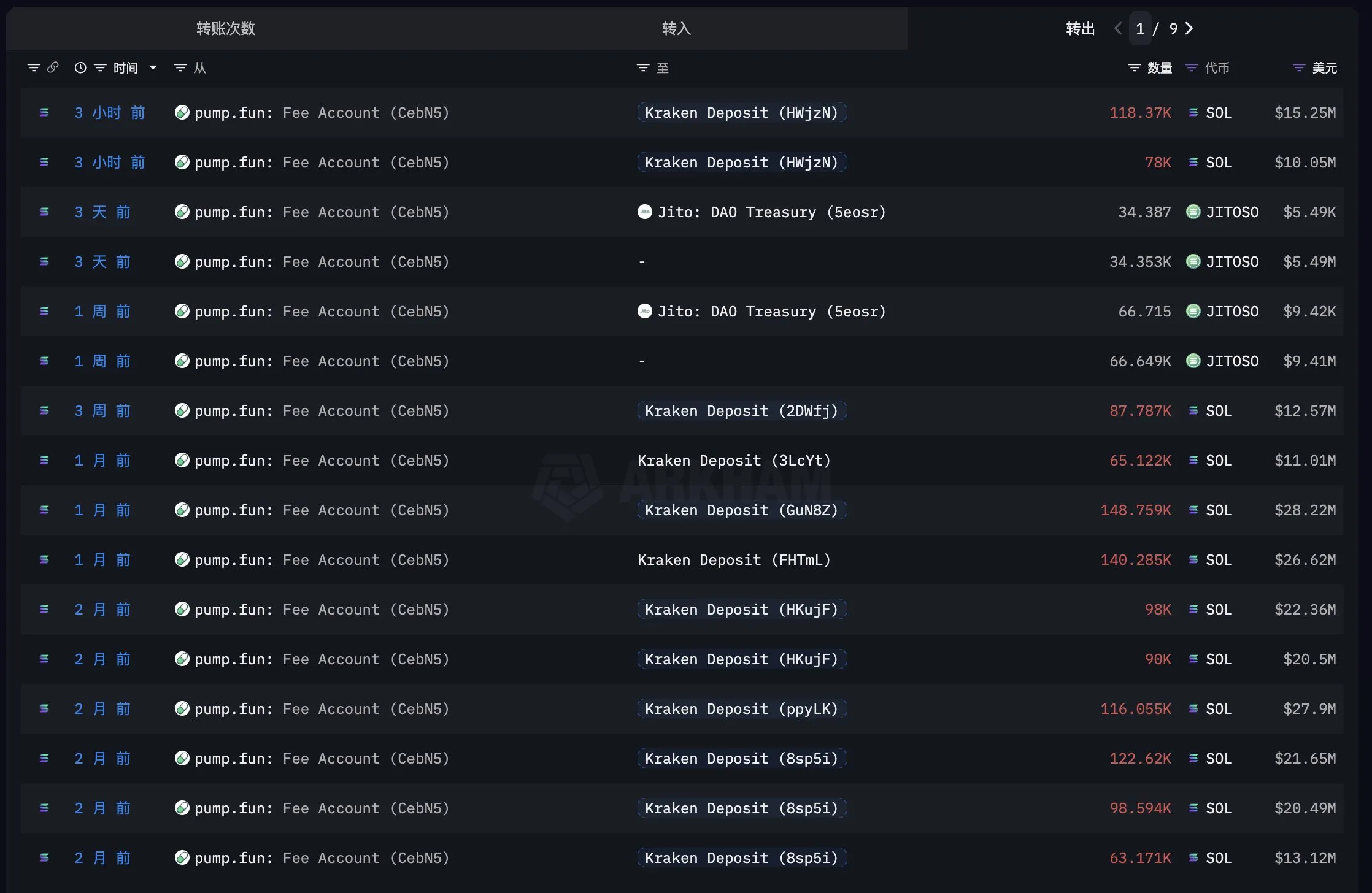 La plataforma de creación de memecoins de Solana, Pump.fun, ha continuado su transferencia de tokens SOL. Recientemente, la plataforma transfirió 196,370 SOL, con un valor aproximado de 25,3 millones de dólares, al exchange Kraken.