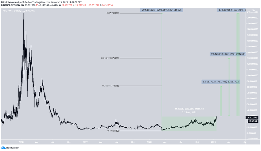 Sea como fuere, NEO se ha estado moviendo hacia arriba desde el mínimo de marzo de 2020, aumentando en un 633% en los 312 días desde entonces.