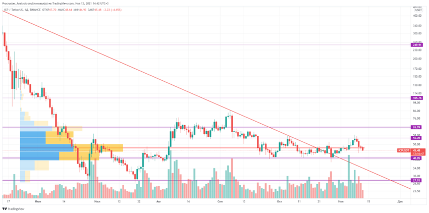 El token ICP ha bajado de precio en más de un 90% desde los máximos alcanzados en mayo de este año. Desde hace varios meses, el token se ha estado consolidando en mínimos, creando condiciones favorables para que los grandes jugadores acumulen el activo y lo dispersen cuando se presente la oportunidad.