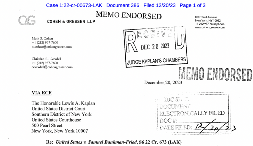 Según un expediente judicial reciente, el juez del tribunal de distrito estadounidense Lewis Kaplan denegó la solicitud basándose en que SBF ya había tenido tiempo suficiente para prepararse para la fecha de sentencia.