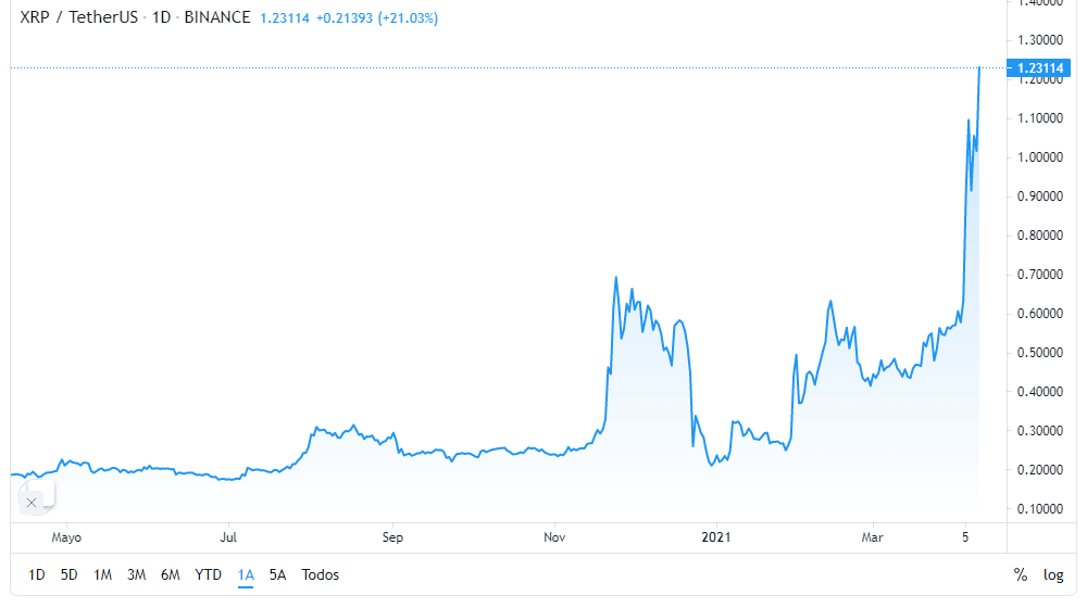 Al momento de escribir este artículo, XRP se había disparado un 20% en las últimas 24 horas, ubicándose en 1,23 dólares según Trading View, quizás alentado por los resultados del fallo judicial a favor de Ripple.