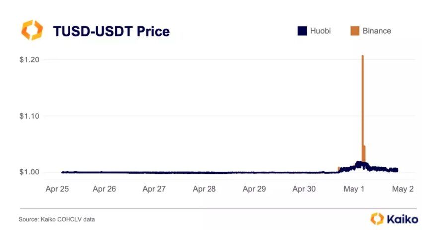 TrueUSD (TUSD) se ha desvinculado en varios exchanges, incluido Binance. Inusualmente, el token aumentó a más de 1.20 dólares en el exchange.