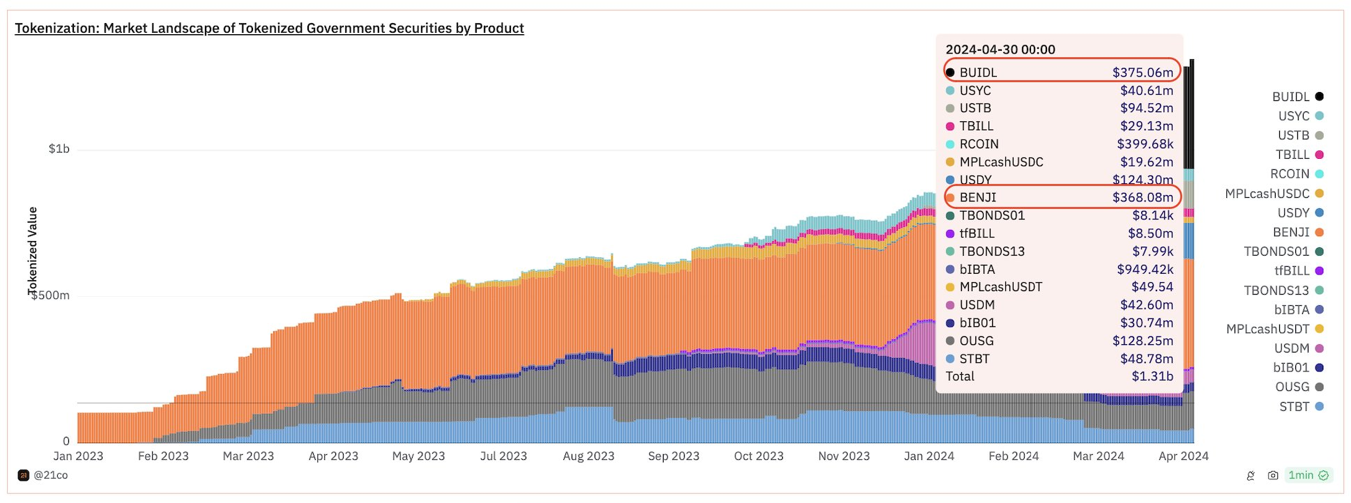 Gracias a este desempeño, BUIDL ha superado al fondo BENJI, anteriormente líder en este espacio, el cual posee actualmente una capitalización de mercado de 368 millones de dólares.