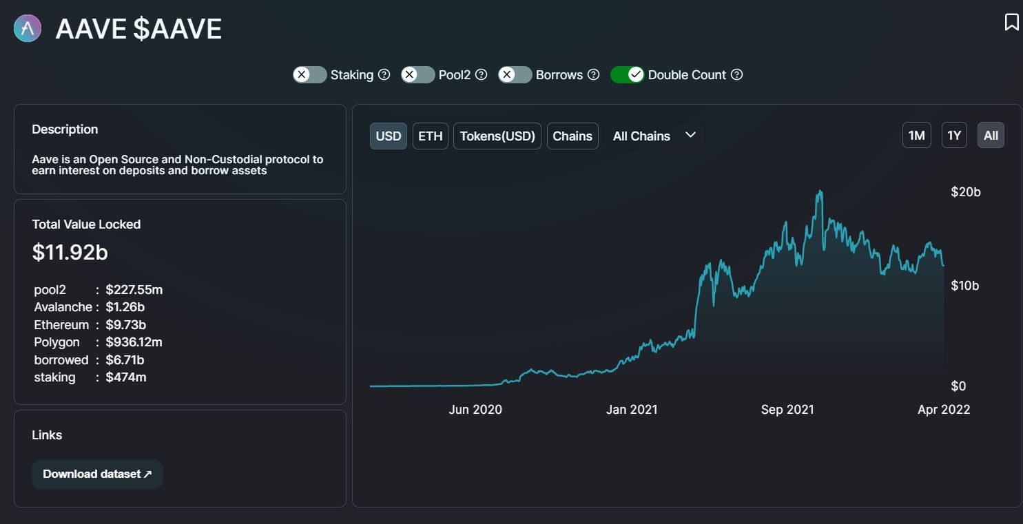 Aave es un destacado protocolo de préstamos y préstamos de DeFi que cuenta con más de 11,9 mil millones de dólares en valor total bloqueado, la suma de los activos administrados por el protocolo, según datos compilados por Defillama.