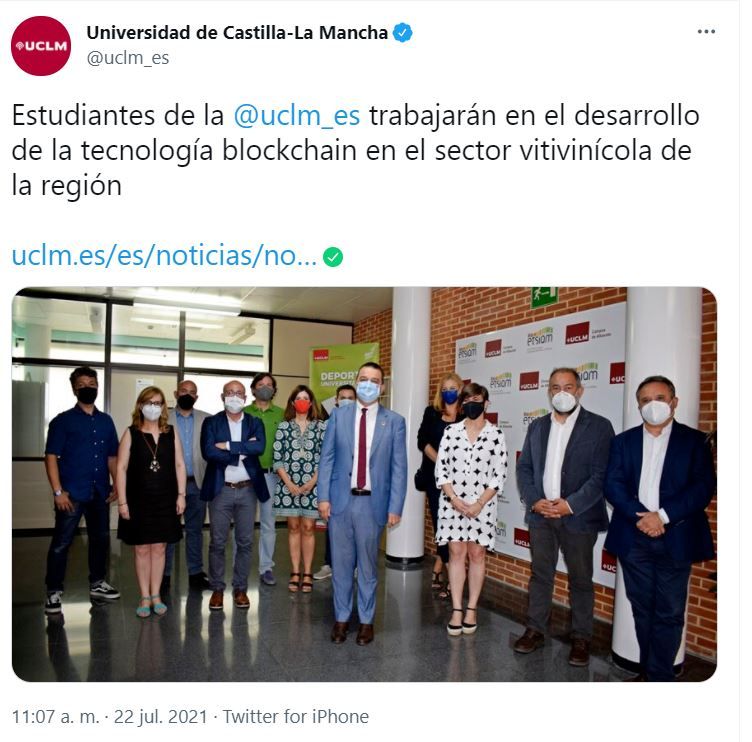 La Universidad de Castilla-La Mancha en conjunto con la Consejería de Agricultura, Agua y Desarrollo Rural y el Parque Científico y Tecnológico de Albacete, lanzaron el proyecto para digitalizar el sector vitivinícola, mediante tecnología blockchain y códigos QR.