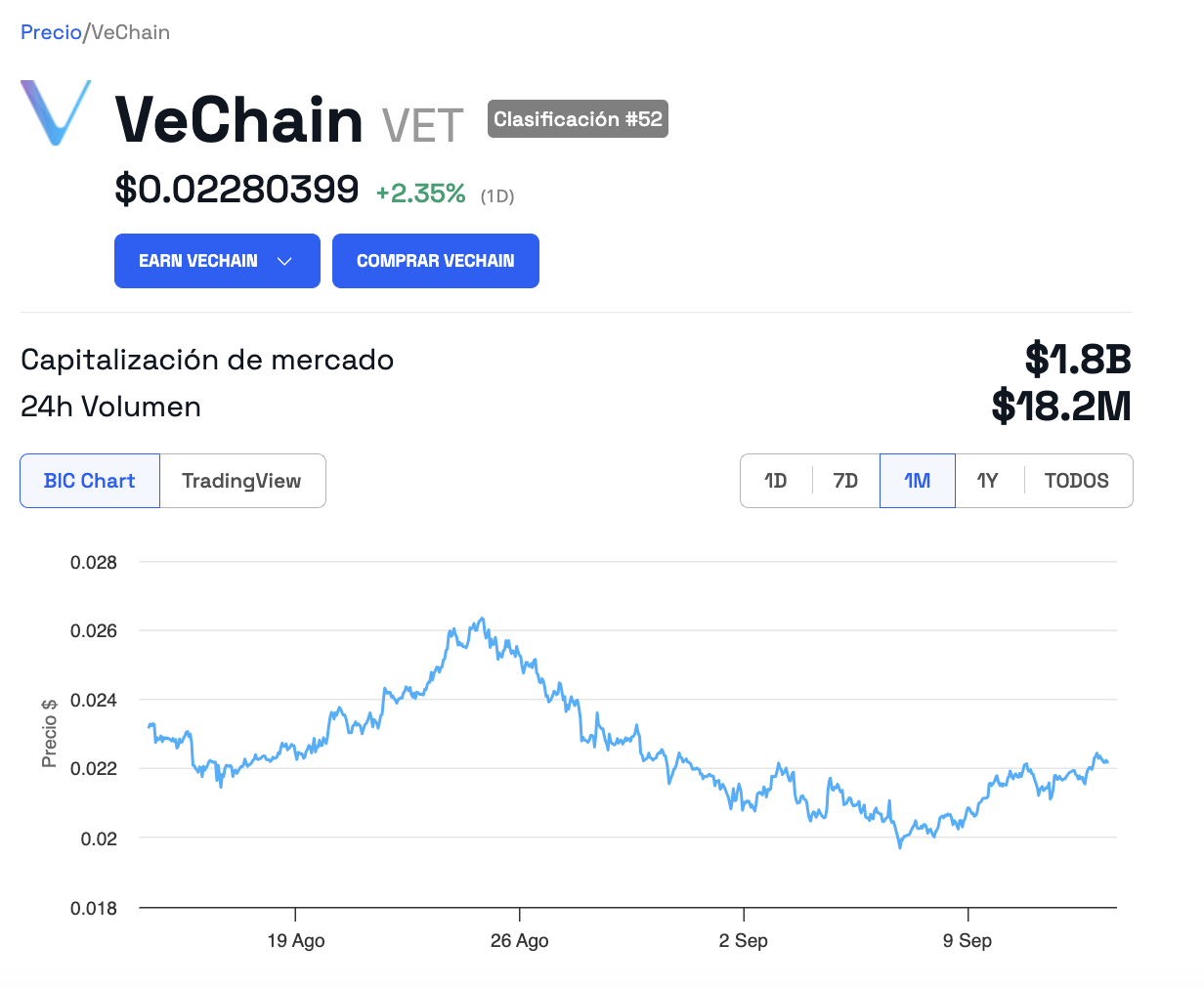Tras la alianza, el precio del token nativo de VeChain (VET) pasó de 0,02197 a 0,02282 dólares y mantiene una ganancia del 2,23% el 13 de septiembre, mientras que en el último año, el token ha ganado 36,46%. En tanto, su capitalización de mercado gana 2,2% y se sitúa en 1,8 mil millones de dólares, y su volumen de trading retrocede 2,09%.