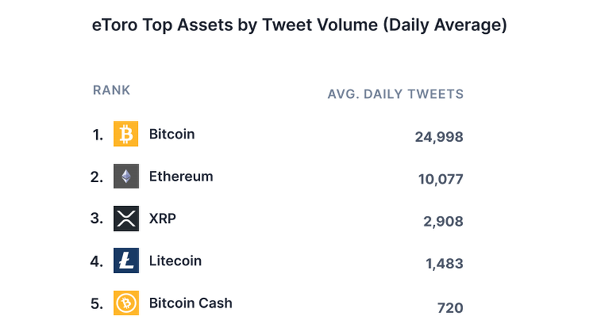 SponsoredQuizás lo más interesante es que las dos empresas analizaron la opinión de los medios sociales a largo plazo para los proyectos principales. En este sentido, Zcash, Cardano y Ethereum tuvieron la puntuación más alta. Sin embargo, TRON tiene el mayor volumen de tuits del último trimestre, con un aumento del 228%. Ethereum quedó en segundo lugar con un aumento del 54% entre los dos últimos trimestres. Sin embargo, Bitcoin sigue siendo el tema de conversación dominante, con una media de 24.998 tuits diarios. Ethereum quedó en segundo lugar con 10.077.