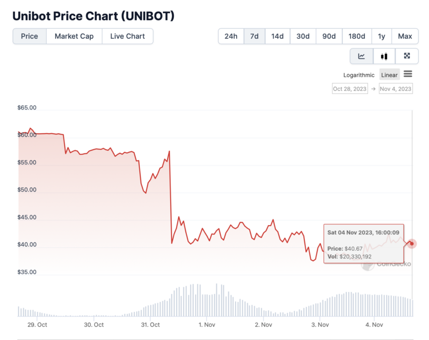 El precio del token Unibot sigue cayendo