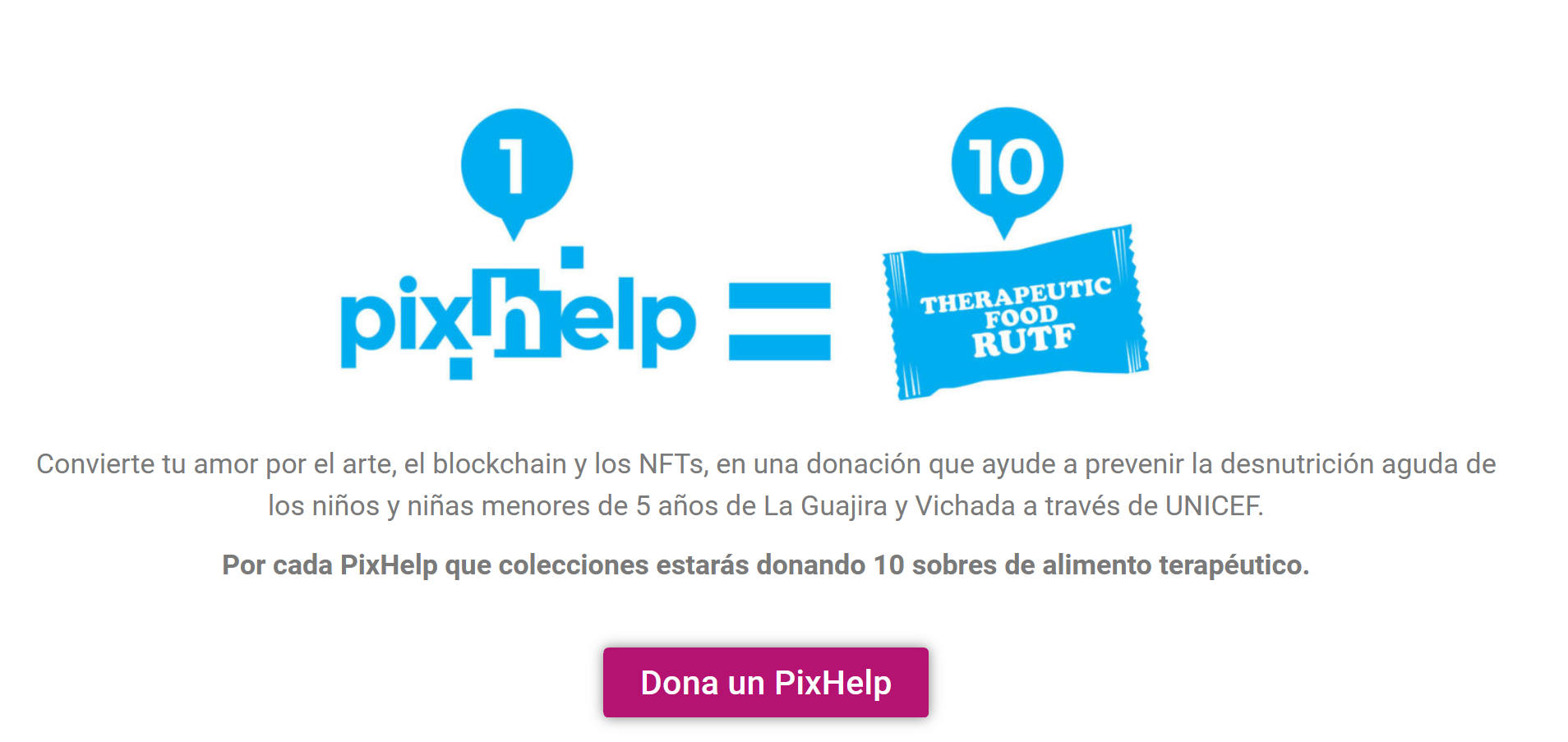 Cualquier persona interesada tiene la oportunidad de adquirir estos PixHelps, y los fondos recaudados se destinarán a la adquisición de alimentos terapéuticos fundamentales que ayudarán a los niños en situación de desnutrición a superar las deficiencias nutricionales críticas.
