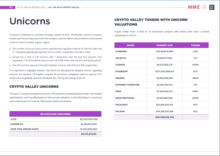 El informe Crypto Valley da un vistazo a los unicornios Web3 y blockchain