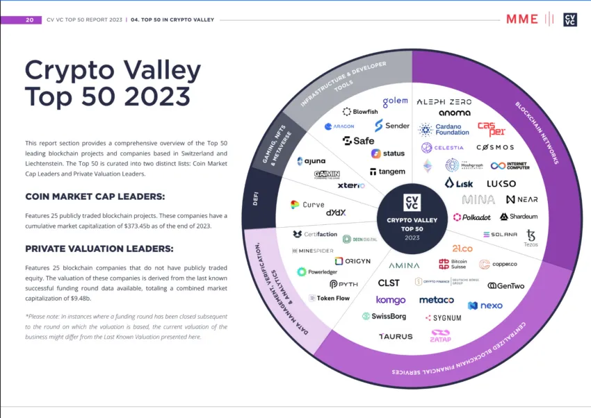El capitalista de riesgo Crypto Valley VC presentó el “Informe Top 50 2023”, la novena edición. Con una impresionante valoración total de 382,930 millones de dólares, los 50 primeros registraron un crecimiento del 106% el año pasado.