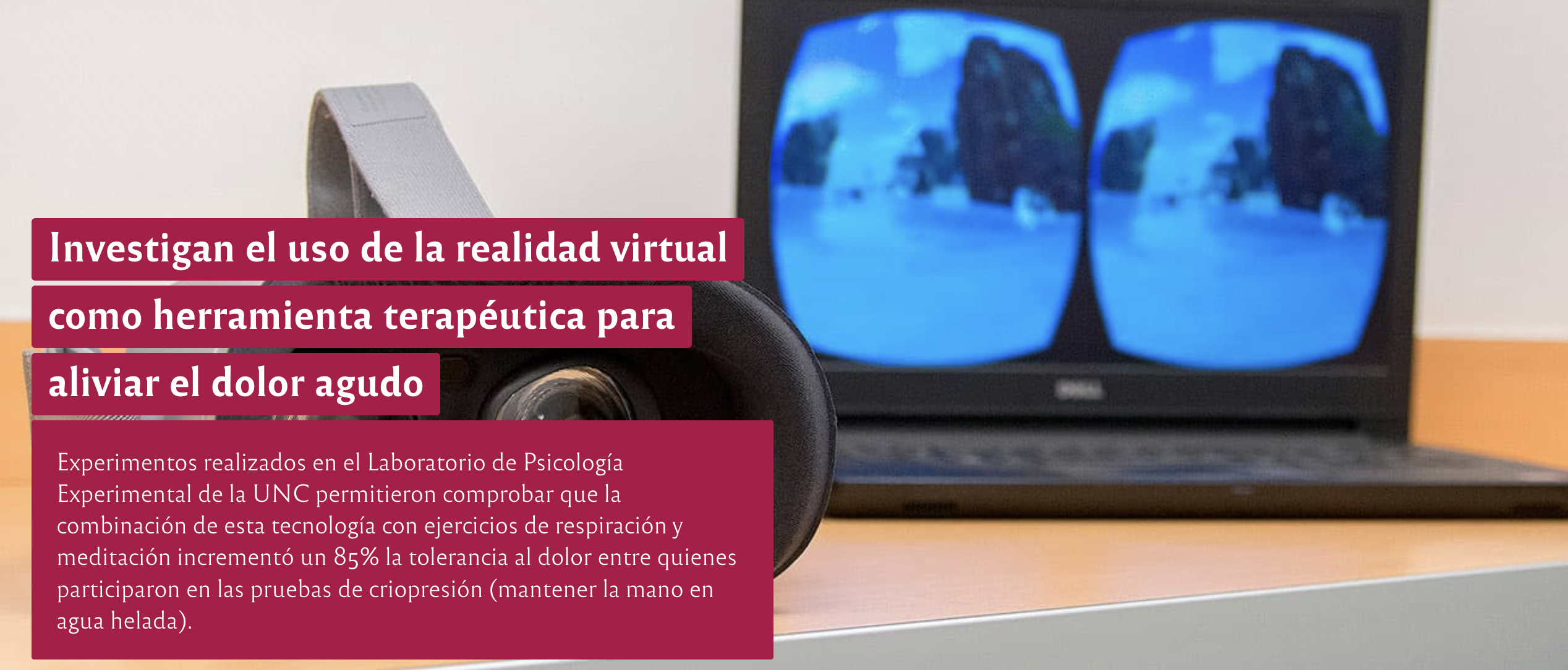 Un trabajo del Laboratorio de Psicología Experimental de la Universidad Nacional de Córdoba (UNC) es pionero en estudiar los beneficios de la inmersión de pacientes en entornos de tipo virtual con una narrativa terapéutica para mejorar la gestión del dolor.