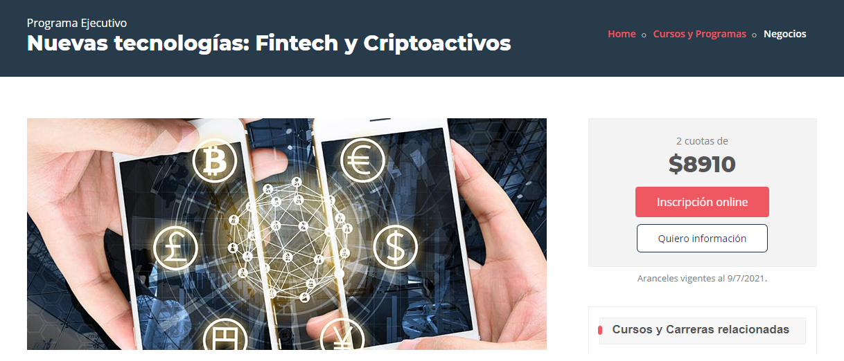El curso tendrá un costo de dos cuotas de 8,910 pesos argentinos (aproximadamente 93 dólares cada cuota) y está dirigido a emprendedores, economistas, abogados, ingenieros, contadores, o simplemente cualquier persona que quiera entender los fundamentos del mundo de los Criptoactivos de una forma integral teórico – práctica.
