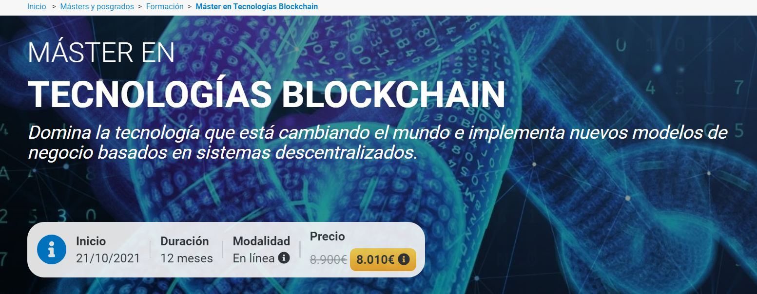 La Universidad Politécnica de Cataluña (UPC) brindará el Máster en Tecnologías Blockchain, que arranca el próximo 21 de octubre, durará 12 meses y tendrá un costo de 8.010 euros. El diplomado buscará que los profesionales de industria dominen la tecnología y cuenten con la capacidad de implementar modelos de negocio en sistemas descentralizados.