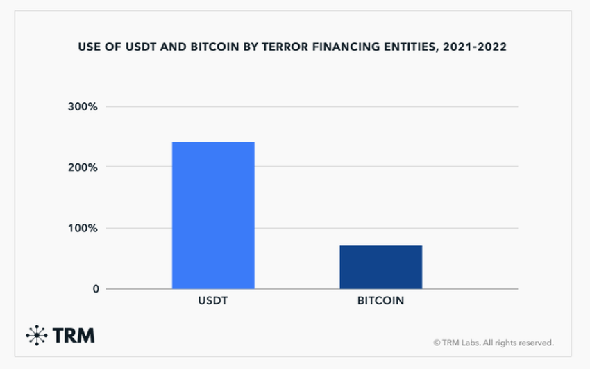 El uso de Bitcoin en la financiación del terrorismo aumentó un 78% en 2022, en comparación con Tether, cuyo uso aumentó un 240%.