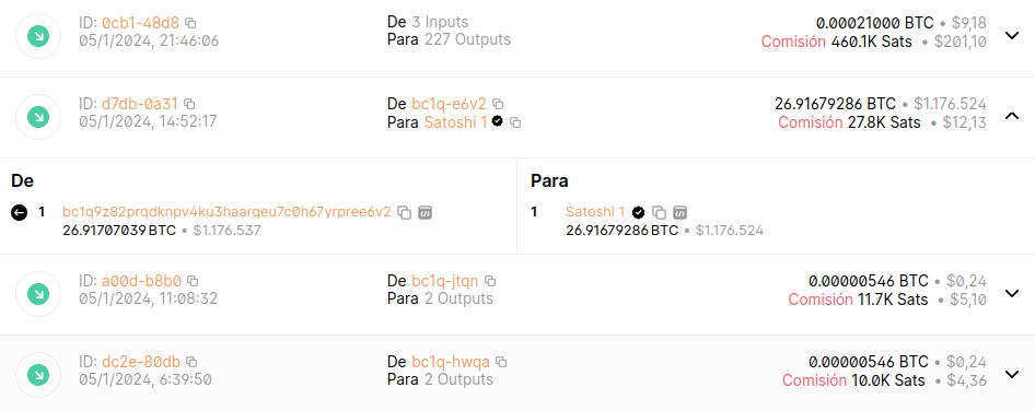 “O Satoshi se despertó, compró 27 BTC de Binance y los depositó en su monedero, o alguien simplemente quemó un millón de dólares”.
