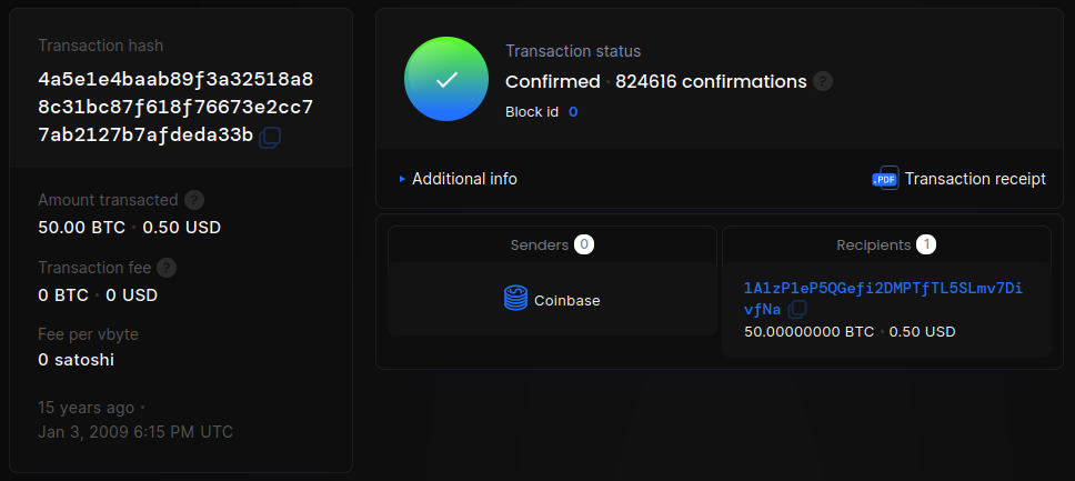 La importancia de la dirección Génesis radica es que representa el primer monedero Bitcoin de la historia. Esta semana se cumplieron 15 años de la acuñación de los primeros 50 BTC.