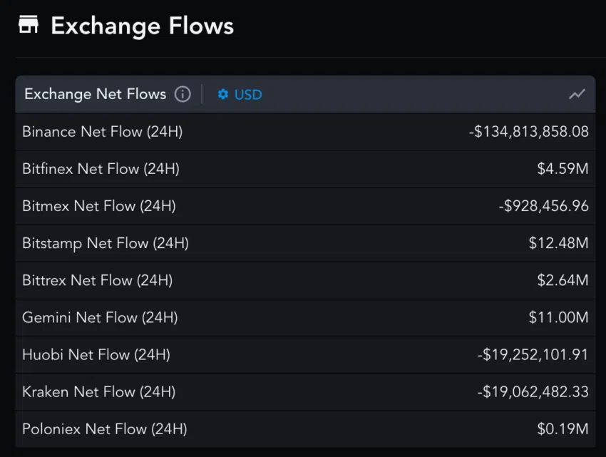 Si bien Binance tuvo flujos netos negativos en las últimas 24 horas, algunos de sus competidores fueron testigos de flujos positivos. Bitstamp tenía un depósito de 12,48 millones de dólares, mientras que 11 millones de dólares se depositaron en el exchange Gemini.
