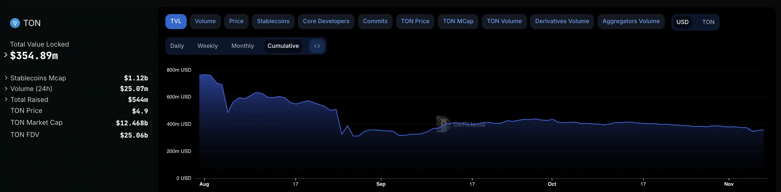 El juego Tap-to-Earn Catizen tuvo una historia similar después de que las funcionalidades dejaron insatisfechos a sus jugadores. Mientras tanto, DeFiLlama dice que los activos totales bloqueados en la blockchain de TON han caído a 354 millones de dólares, ubicándola en el puesto 21, a pesar de estar en los diez primeros puestos hace solo unos meses.