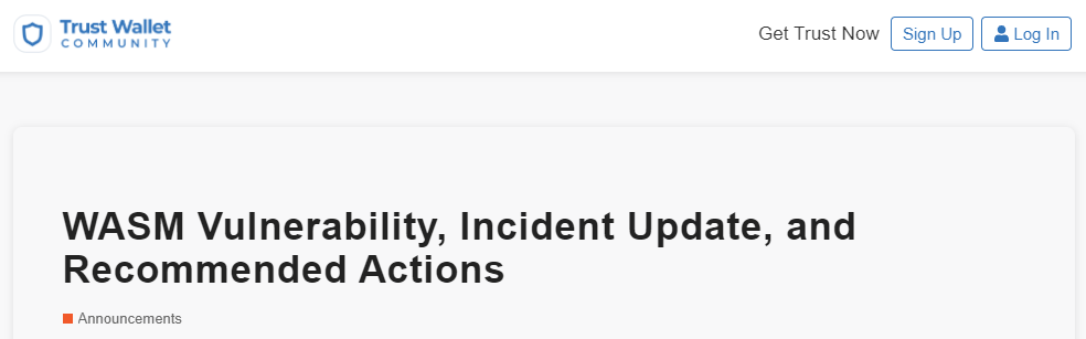 Trust Wallet informó que el exploit de vulnerabilidad de WebAssembly (WASM) provocó la pérdida de 170,000 dólares a sus usuarios.
