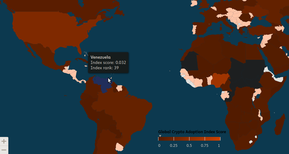 Según datos de Chainalysis, Venezuela es uno de los países con mayor adopción de criptomonedas en el mundo. Durante el año 2023 en el puesto 39 del índice global de adopción.