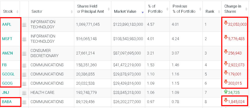 El reconocido fondo de inversión BlackRock fue una de las carteras de inversiones más evidentes con este comportamiento de rotación: entre sus movimientos se centraron grandes ventas en empresas tecnológicas como Microsoft (MSFT), Amazon (AMZN), Facebook (FB), Google (GOOGL) y Alibaba (BABA).
