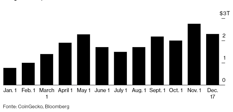El valor de mercado general de las criptomonedas aumentó de aproximadamente $1,5 billones en 2021 a aproximadamente $2,3 billones el 17 de diciembre, según el monitoreo de CoinGecko, que cuenta con casi 12,000 tokens.