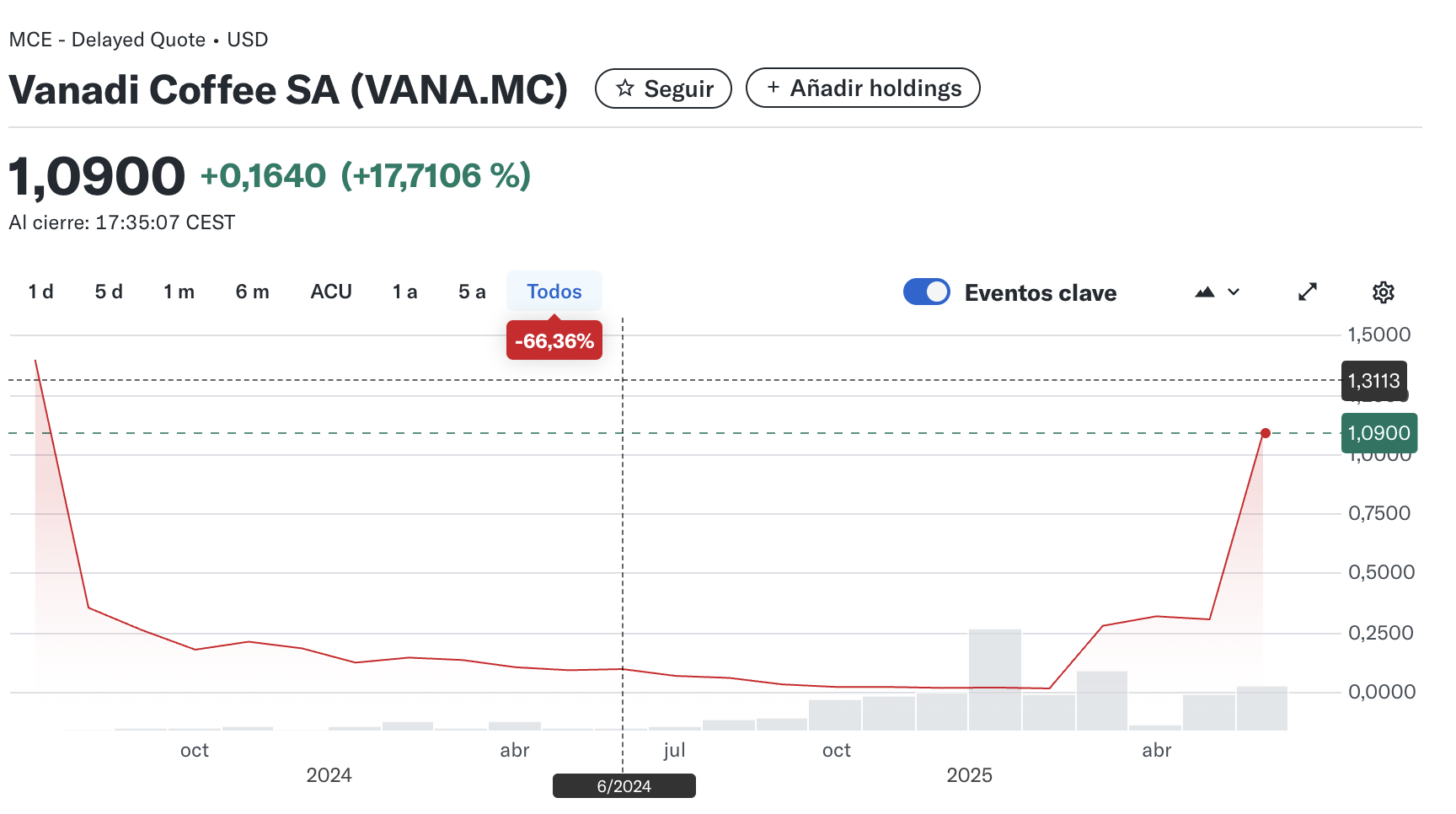 Con esta movida, Vanadi Coffee sigue los pasos de otras grandes empresas como Strategy (antes conocida como MicroStrategy) y Metaplanet, que han apostado fuertemente por el activo digital. La noticia fue celebrada por los mercados, ya que las acciones de la empresa, cotizadas bajo el símbolo VANA.MC, subieron un impresionante 25% en las primeras horas del 30 de junio, alcanzando los 1,16 dólares, lo que representa una recuperación notable tras su desplome a 0,0162 dólares en febrero de este año.
